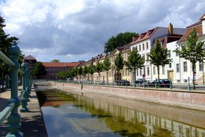 Potsdam, que tiene aprox. 132.000 habitantes (2008), situado a orillas del río Havel – 35 km al suroeste de la capital alemana de Berlín. Es la capital del estado de Brandeburgo. Fue un asentamiento aquí desde la Edad de Bronce, mientras que la ciudad de Potsdam que se conoce de 993 años