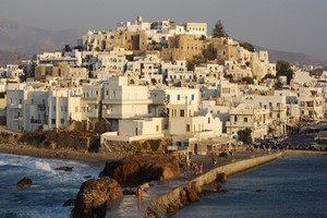 Naxos es una isla griega en el mar Egeo, cuya ciudad principal y capital tiene el mismo nombre. La ciudad de Naxos se encuentra en el lado oeste de la isla de Naxos. Naxos ocupa un área de unos 126.957 km2. La ciudad en sí es el hogar de 2000 habitantes, pero la isla en su totalidad está habitada por unas 20.000 personas. Algunos de los productos que se producen en la ciudad son el licor de kitron (un licor producido a partir del limonero), y las patatas, productos consumidos en toda Grecia.